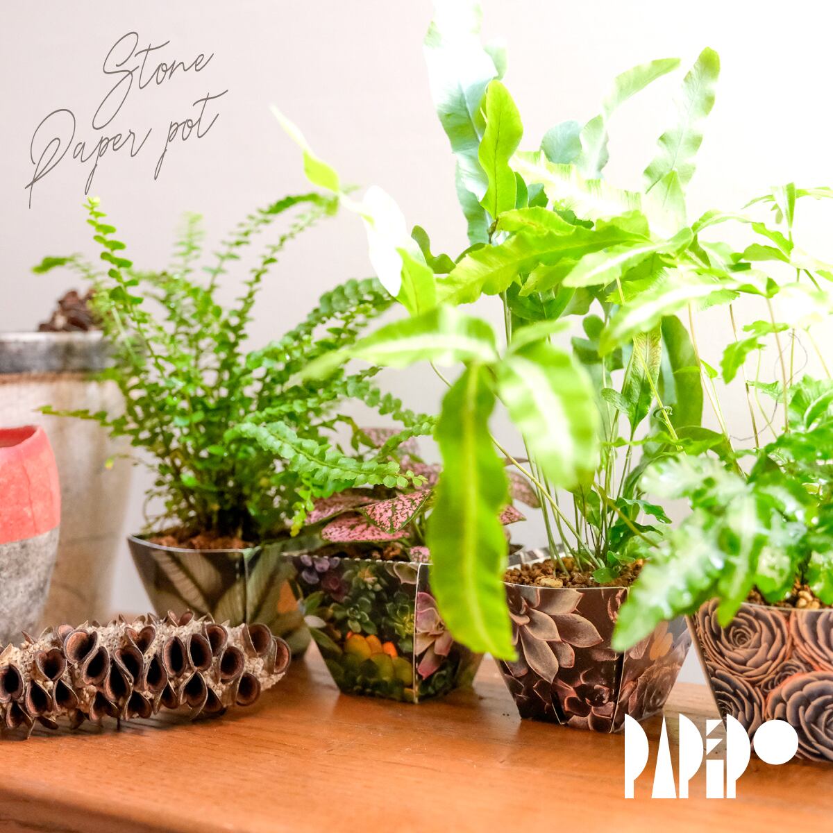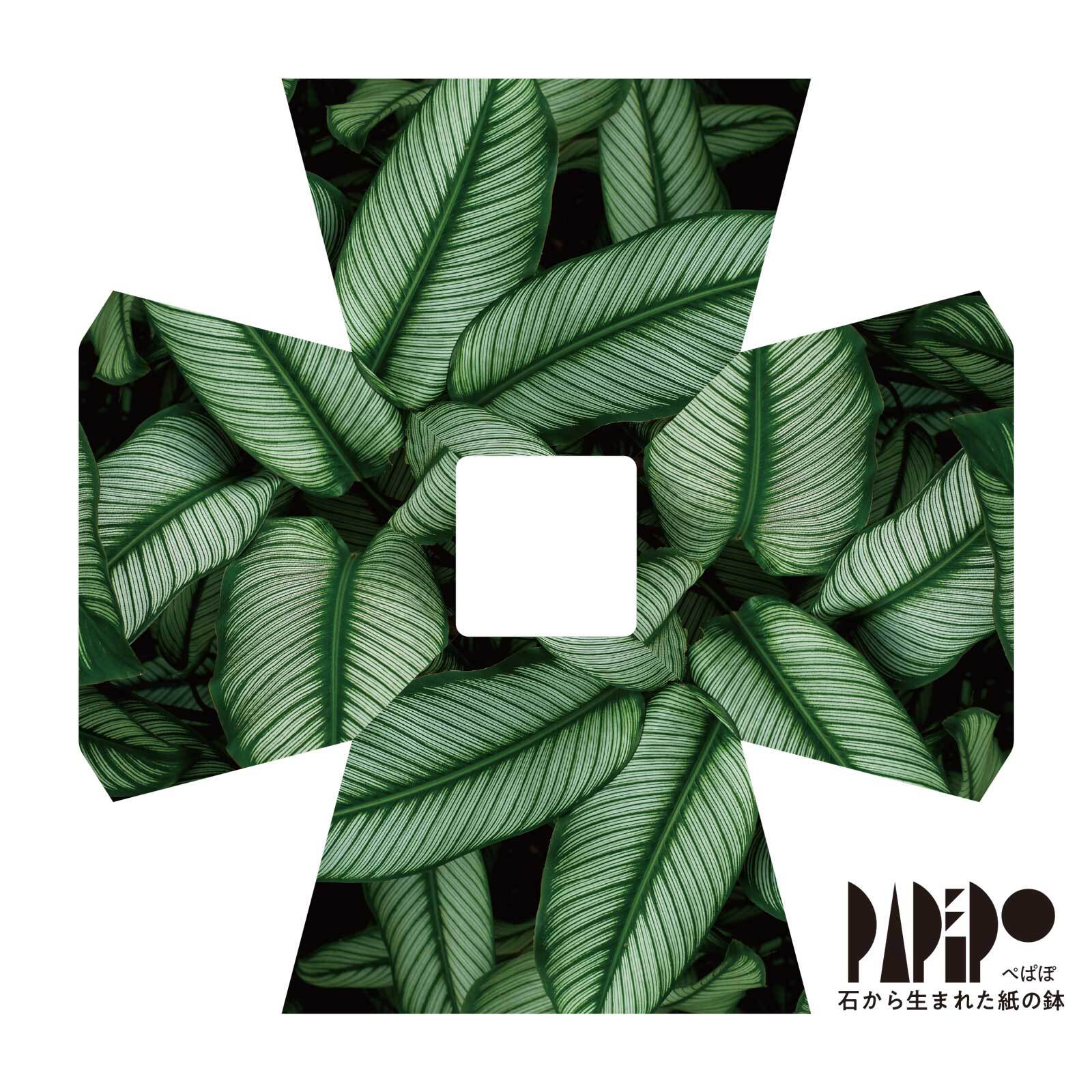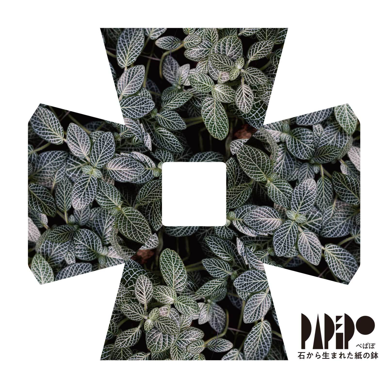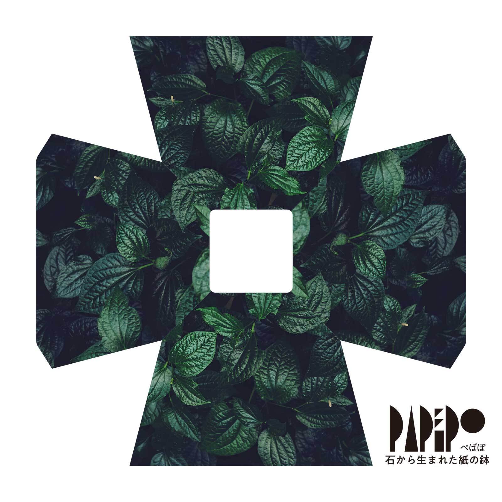 「ぺぱぽ」とは、石から生まれた折って作る紙の鉢。紙だから好みのグラフィックも印刷ができ、ノベリティーや手描きのメッセージを施してプレゼントとして…環境課題を意識する豊橋合同印刷株式会社が設計・デザインしました。+PAPERならではのオリジナル商品です。